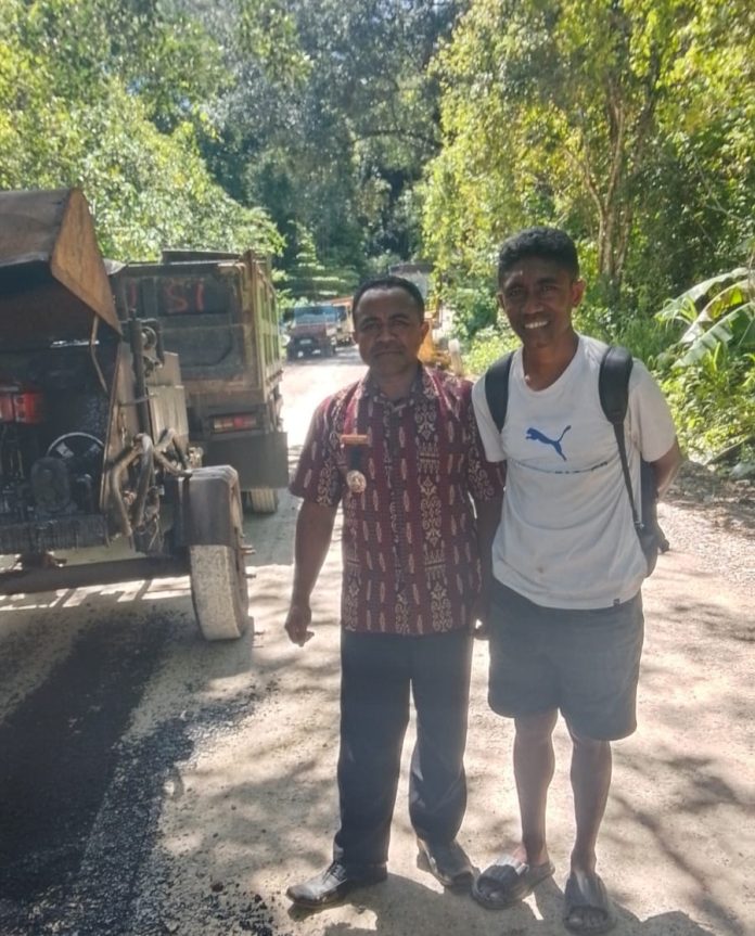 Kupang, TiTo – Kepala desa Oelbiteno kecamatan Fatuleu tengah kabupaten Kupang, Heskial Naben menyampaikan CV. Adesti Indah sementara melakukan perbaikan ruas jalan yang rusak di desa itu setelah dikerjakan tahun 2021.