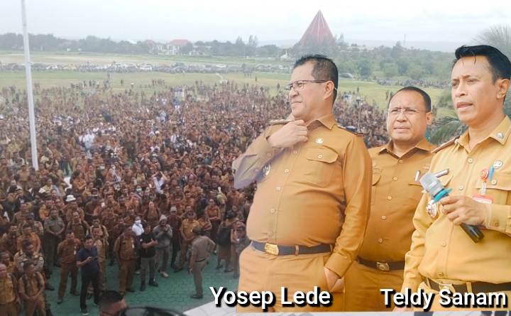 “Jadi tidak dipotong (50 persen gaji), dibayar utuh sambil kita cari jalan (soal devisit anggaran),”kata Yosep Lede disambut riuh tepuk tangan para PPPK. Diantara riuh tepuk tangan itu ada sahutan “dua periode”.