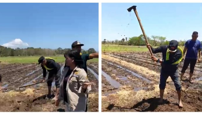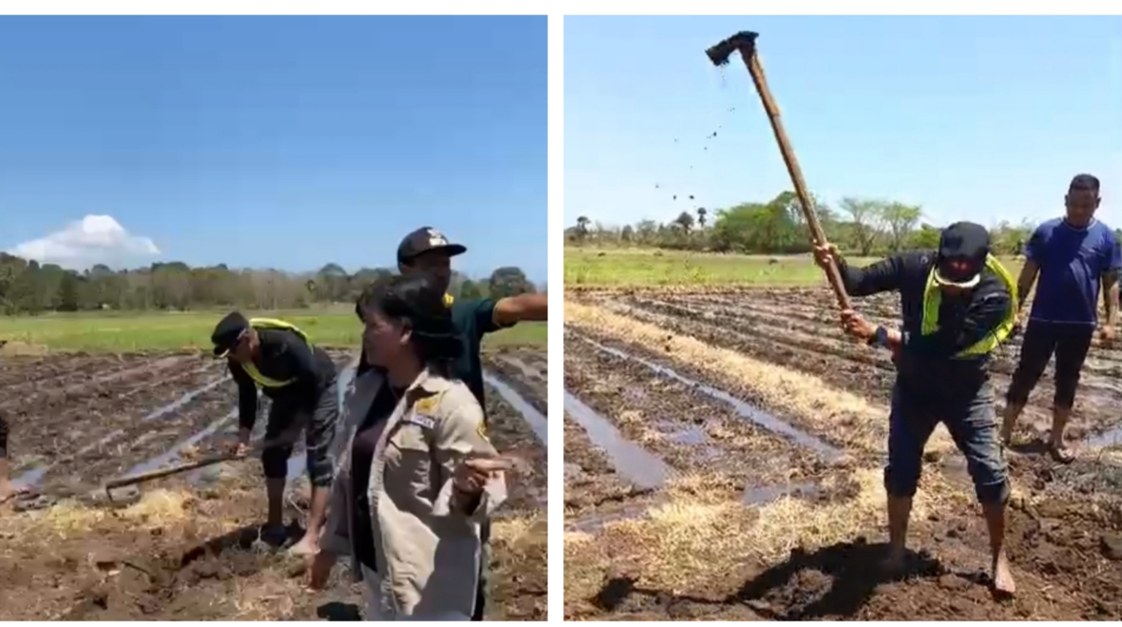 Aktifitas persiapan lahan seperti mencangkul tanah untuk membuat pematang hingga penanaman anakan dilakukan langsung Kajari Yupiter Selan.