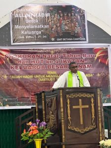 Ibadah syukuran Natal bertema “Allah Hadir Untuk Menyelamatkan Keluarga” ini dipimpin ketua klasis GMIT Fatuleu Pdt. Merits Nenoliu, S.Th dan pengkhotbah oleh Pdt. Yunus Kay Tulang, M.Th, Ketua BPAPE Sinode GMIT.