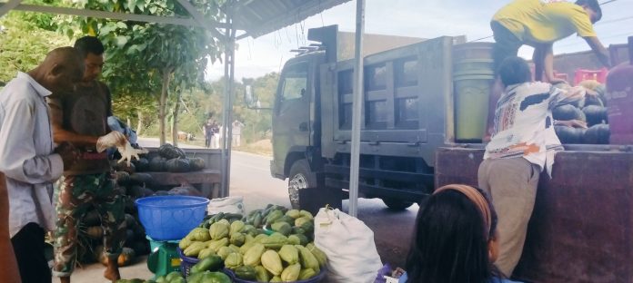 Kini di kelurahan Oesao, jalur menuju Tuatuka dan Fatukanutu, kecamatan Amabi Oefeto, Selfi mendirikan lapak sayuran, aneka bumbu dapur dan buah.