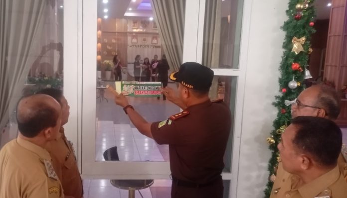 Dalam pembagian Kajari Yupiter juga menempel stiker bertulis “Mari Katong Semua Berantas Korupsi” di kantor bupati dan sejumlah kantor OPD.