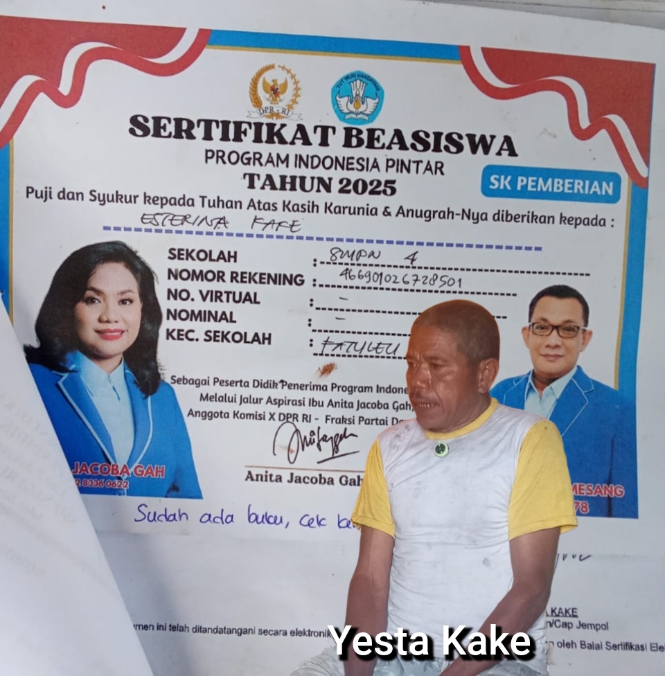 Yesta Kake, ayah Ester mengisahkan pada tahun 2025 ia mendatangi Rumah Aspirasi Anita Jakoba Gah untuk mendaftar anaknya sebagai calon penerima beasiswa PIP.