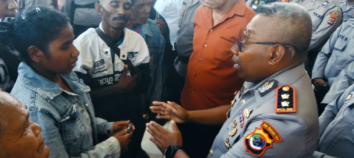 “Kami (polisi) ada disini untuk mencegah tindakan anarkis yang bisa merugikan saudara-saudara semua,”ungkap Kapolres Rudy Ledoh.