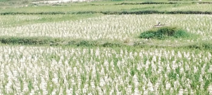 Dijelaskan Hengky di area persawahan yang luasannya mencapai sekitar 40-an hektare tersebut kini setengah bagiannya mengalami kekeringan akibat kurangnya pasokan air dari bendungan melalui irigasi sederhana yang ada. Padi berumur kira-kira sebulan kini terancam gagal panen di area sawah sekitar 20-an hektare.