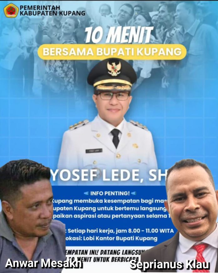 Kupang, timurtoday.id – Pemerintah kabupaten (pemkab) Kupang, Nusa Tenggara Timur (NTT) mengeluarkan kebijakan baru diawal tahun 2026 dengan ‘label’, “10 Menit Bersama Bupati Kupang Yosep Lede”.